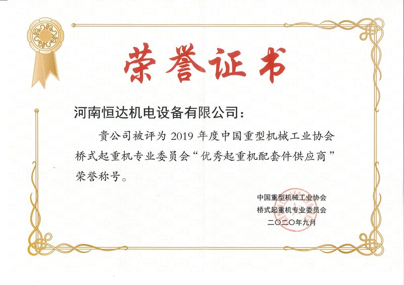 中國重機協(xié)會橋機委員會優(yōu)秀配套件供應(yīng)商